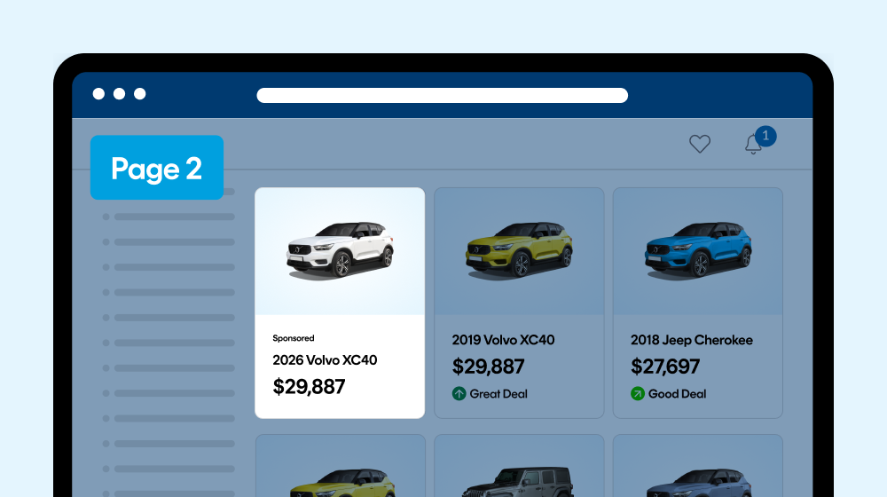 Promote specific vehicles in additional sponsored slots within CarGurus search results.
